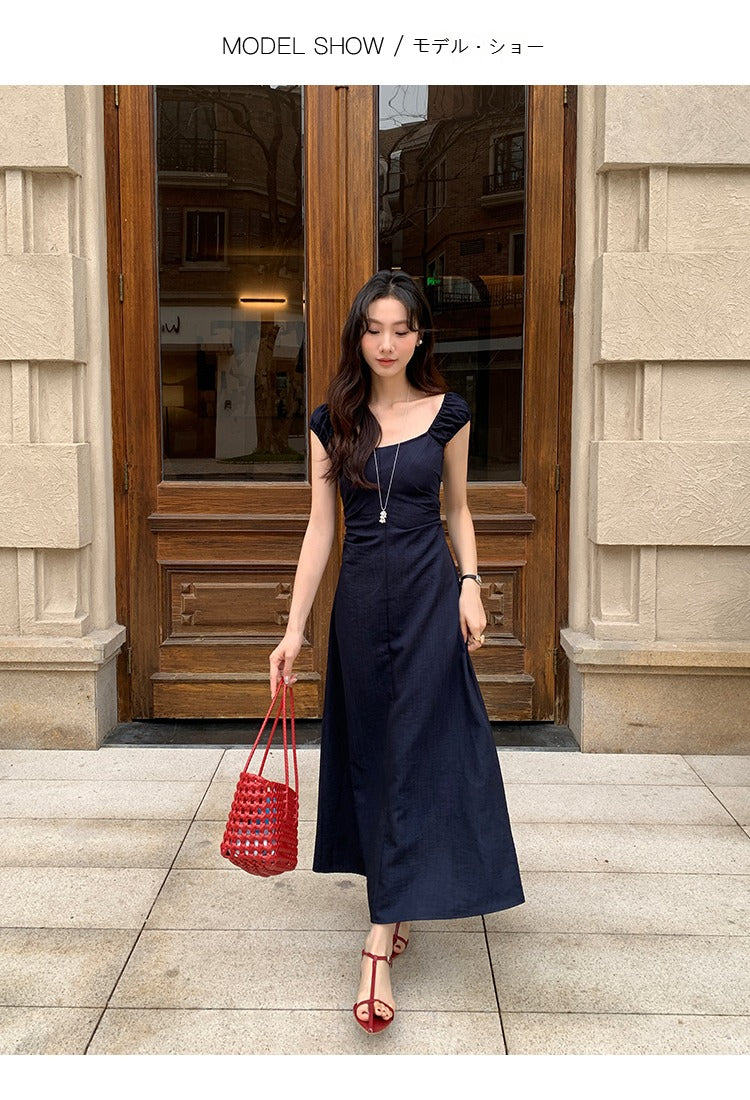 レディース きれいめ スクエアネック ワンピース|背中開き 夏向け スタイルアップ