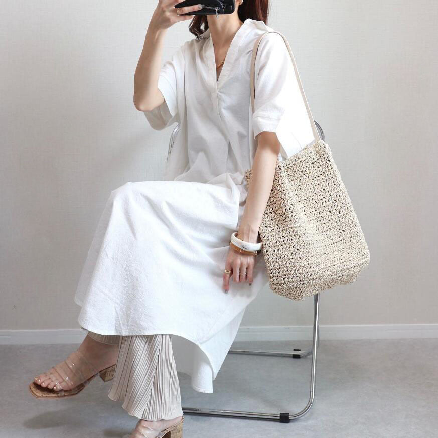 半袖 チュニック ロングワンピース ゆったり 体型カバー