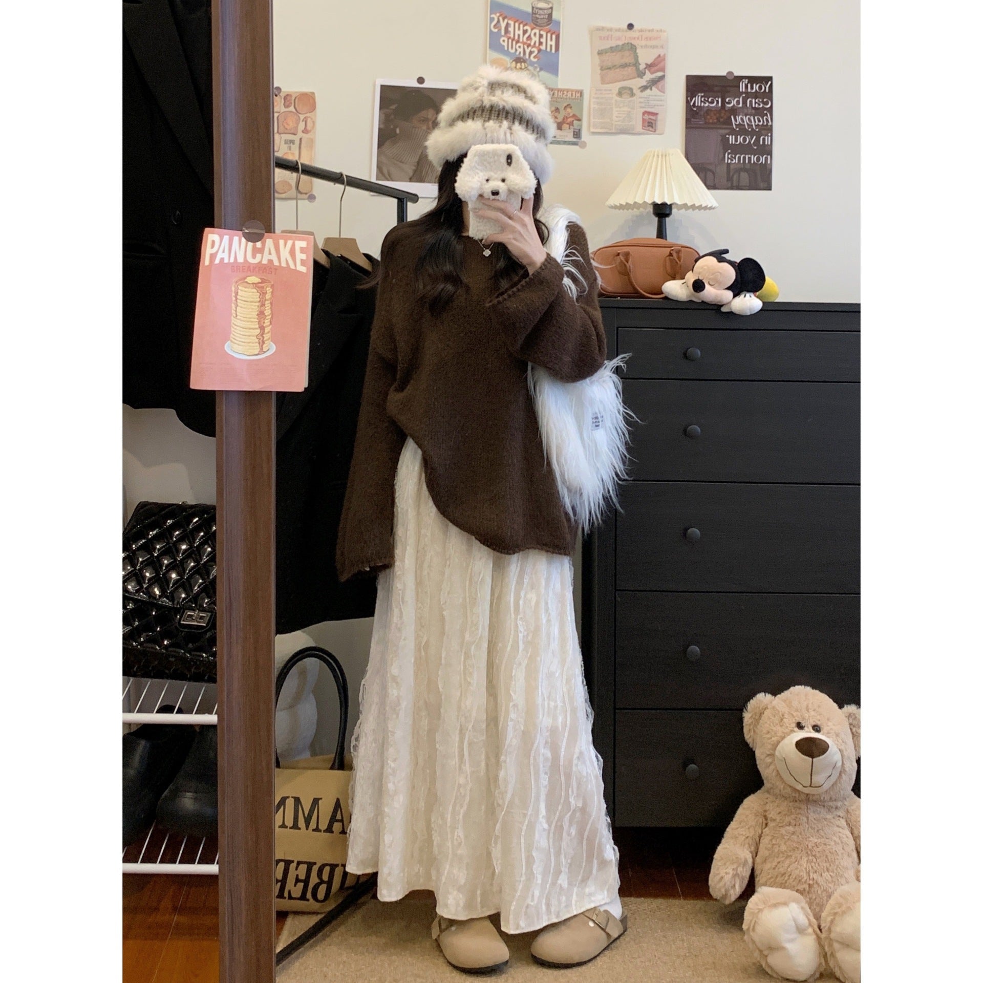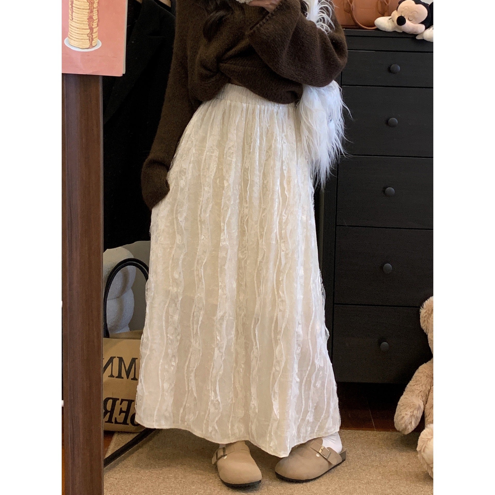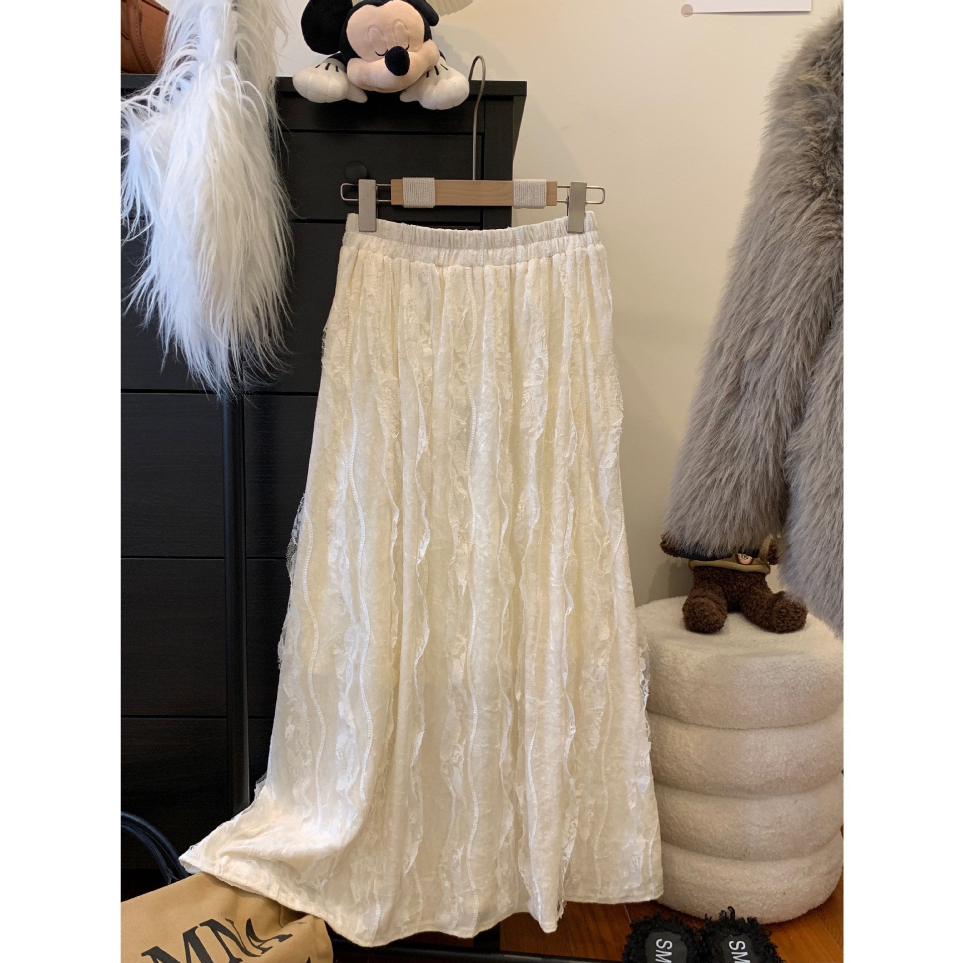 スカート丈は約85cm、ウエストは63~76cmまで伸縮するゴム仕様で、裏地も付いています。