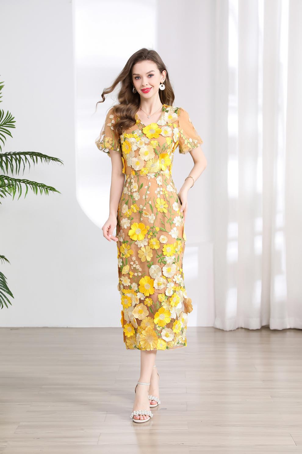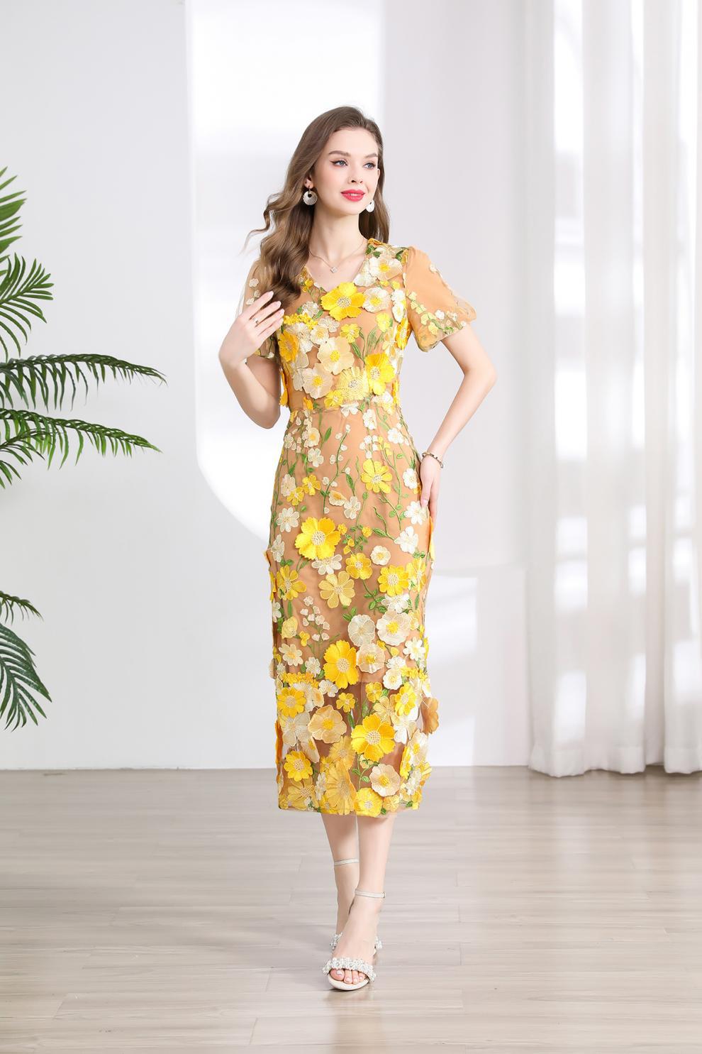 フローラルモチーフが優雅に映える、大人っぽいVネックワンピース。上質な素材感と洗練された花柄デザインが、日常から特別な日まで幅広いシーンで活躍します。半袖仕様で季節の変わり目にも重宝。Vネックラインが顔周りをすっきり見せ、体のラインを美しく整えます。一枚で完成する上品な着こなしをお楽しみください。
