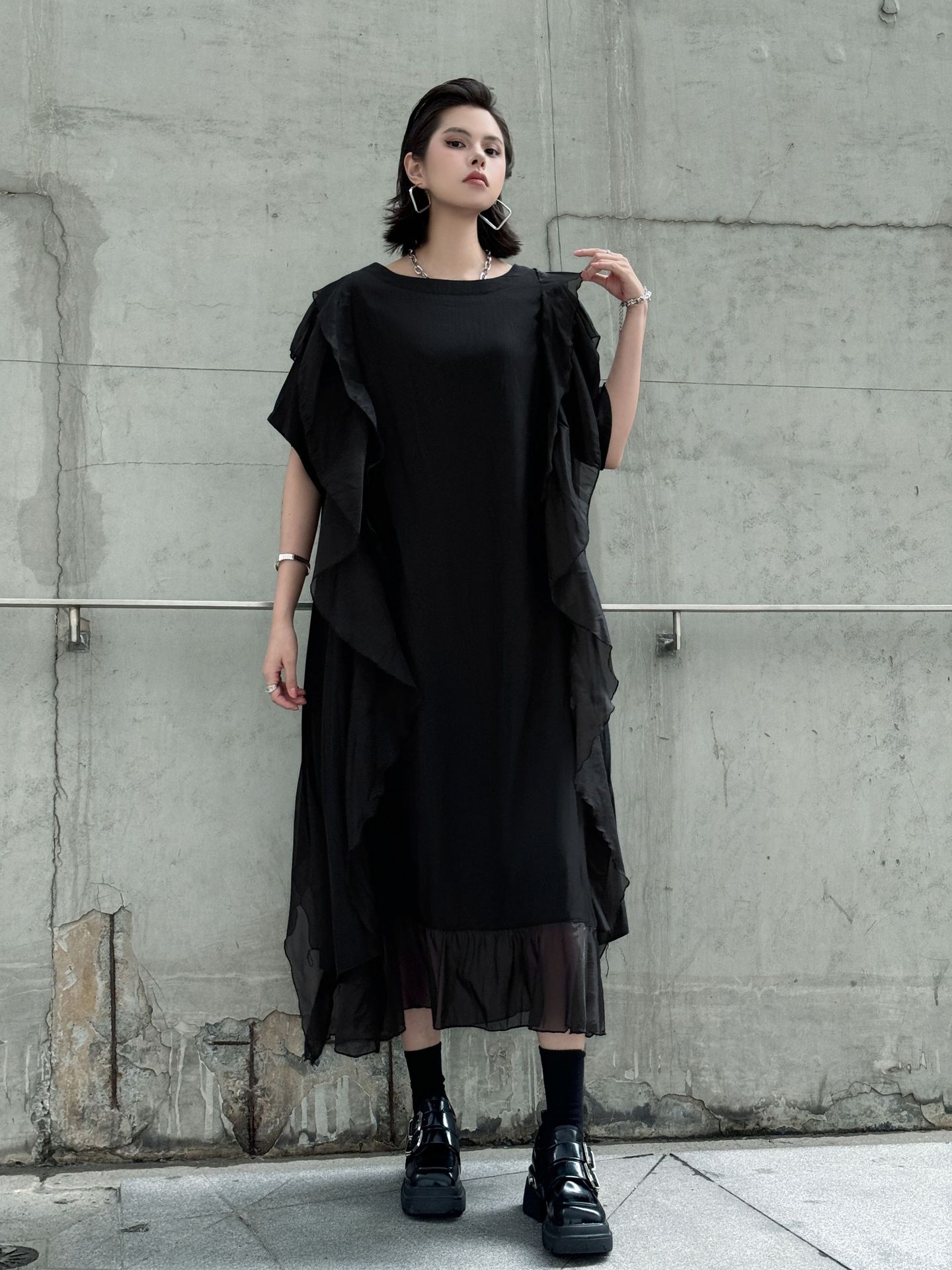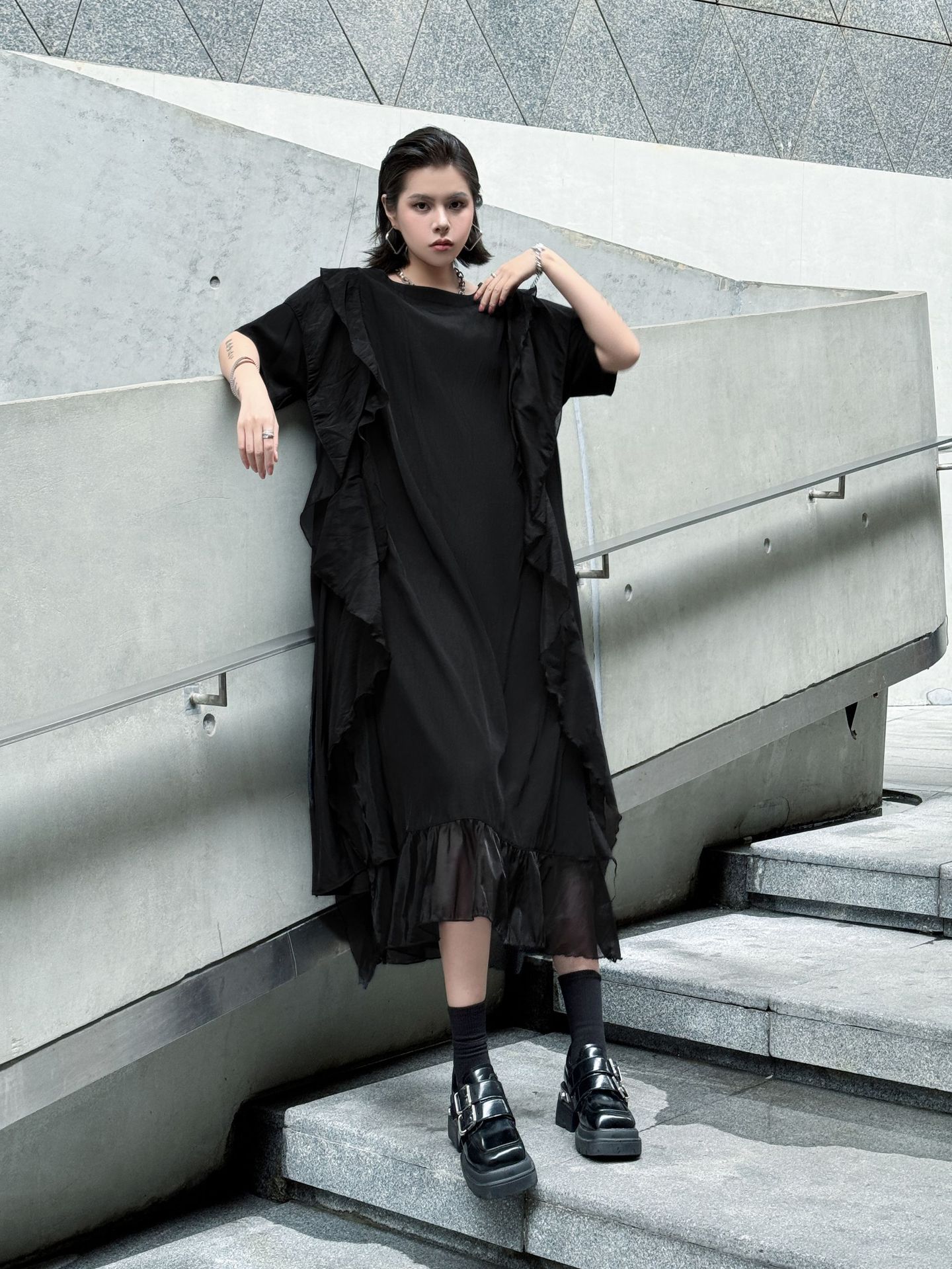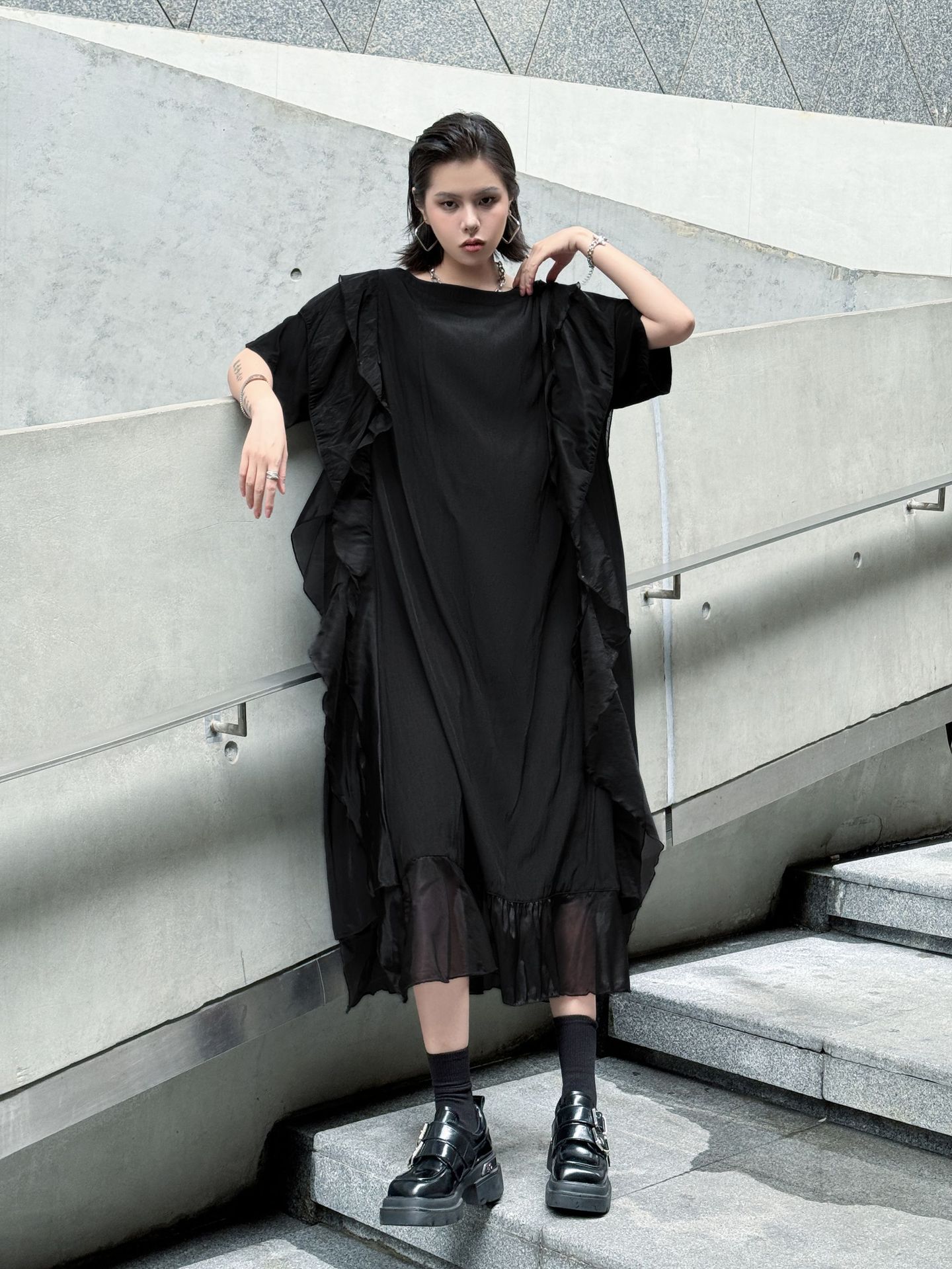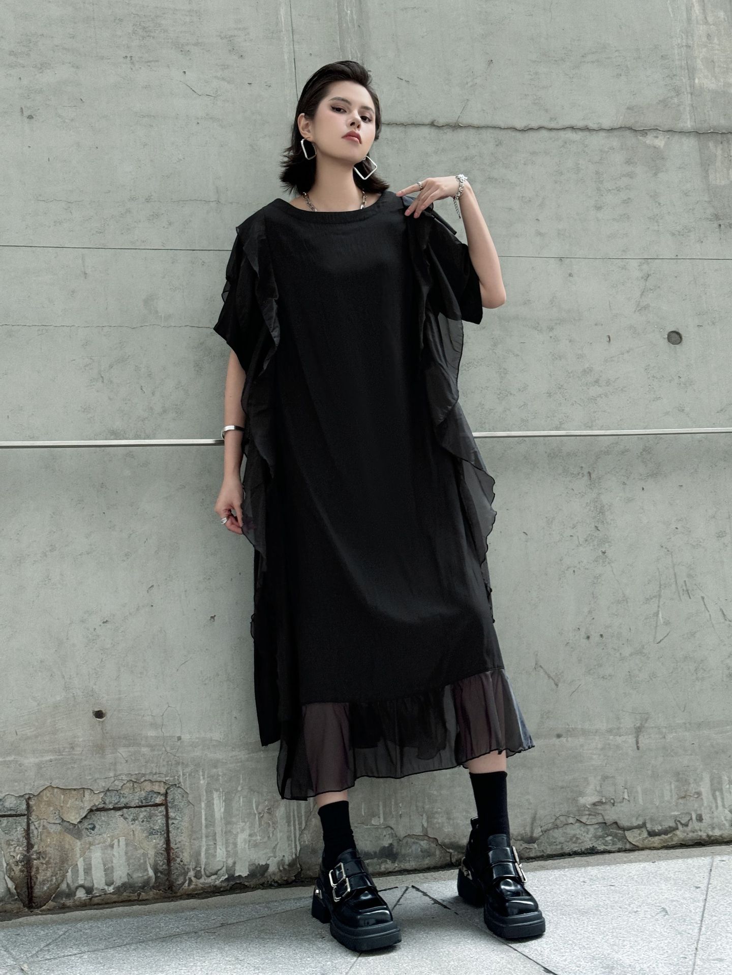 洗練された黒のワンピースは、どんなシーンにも対応できる万能アイテムです。ゆったりとしたシルエットが体のラインを優しく包み込み、快適な着心地を実現。上質な素材感と落ち着いた色合いで、カジュアルからフォーマルまで幅広いスタイリングが可能。一枚で完成する大人っぽい装いで、毎日のコーディネートをより洗練させます。