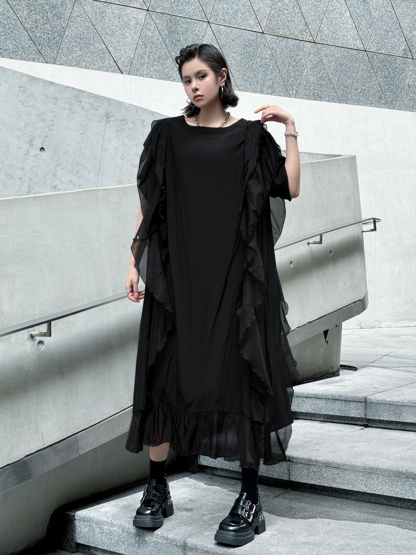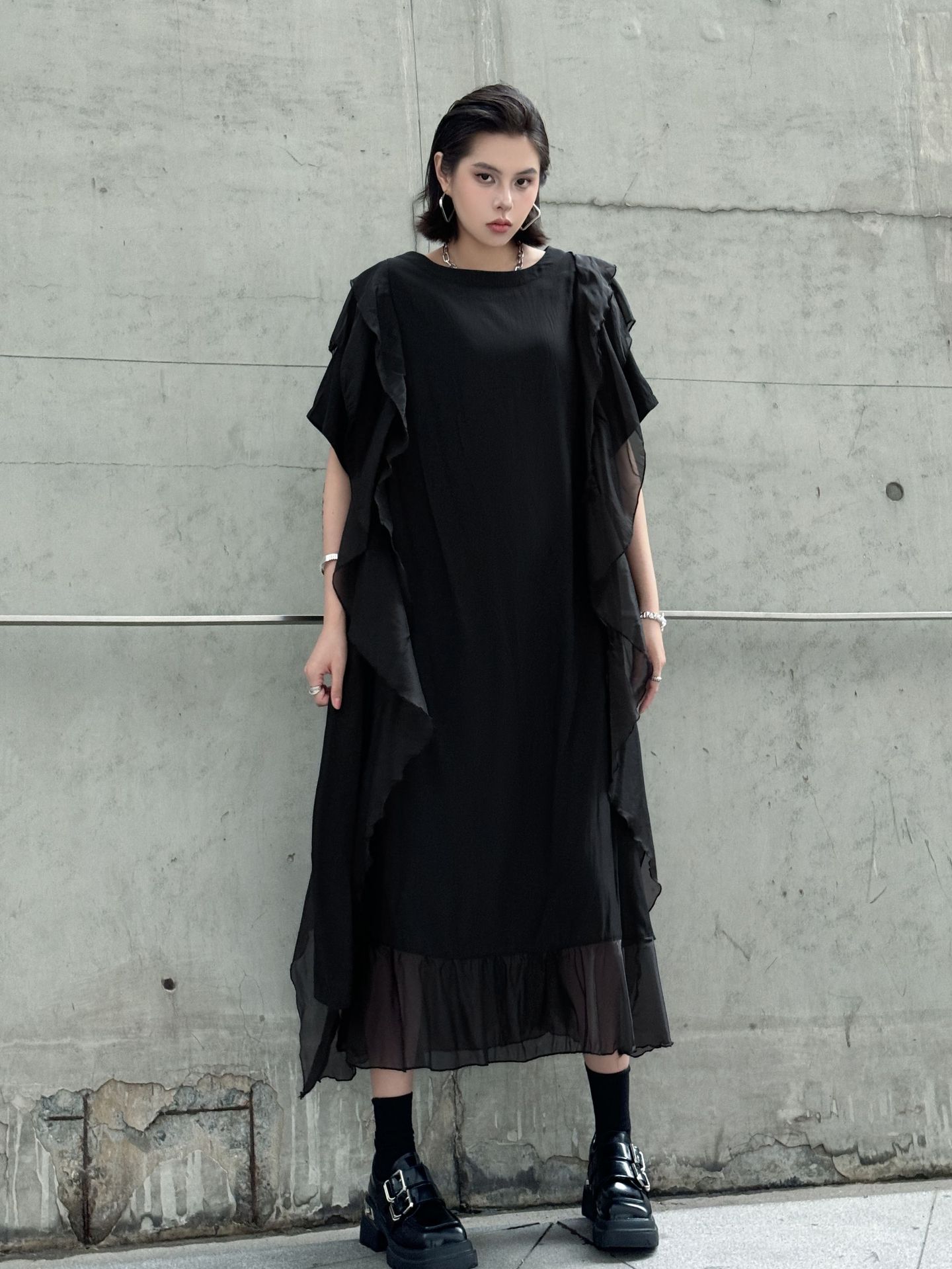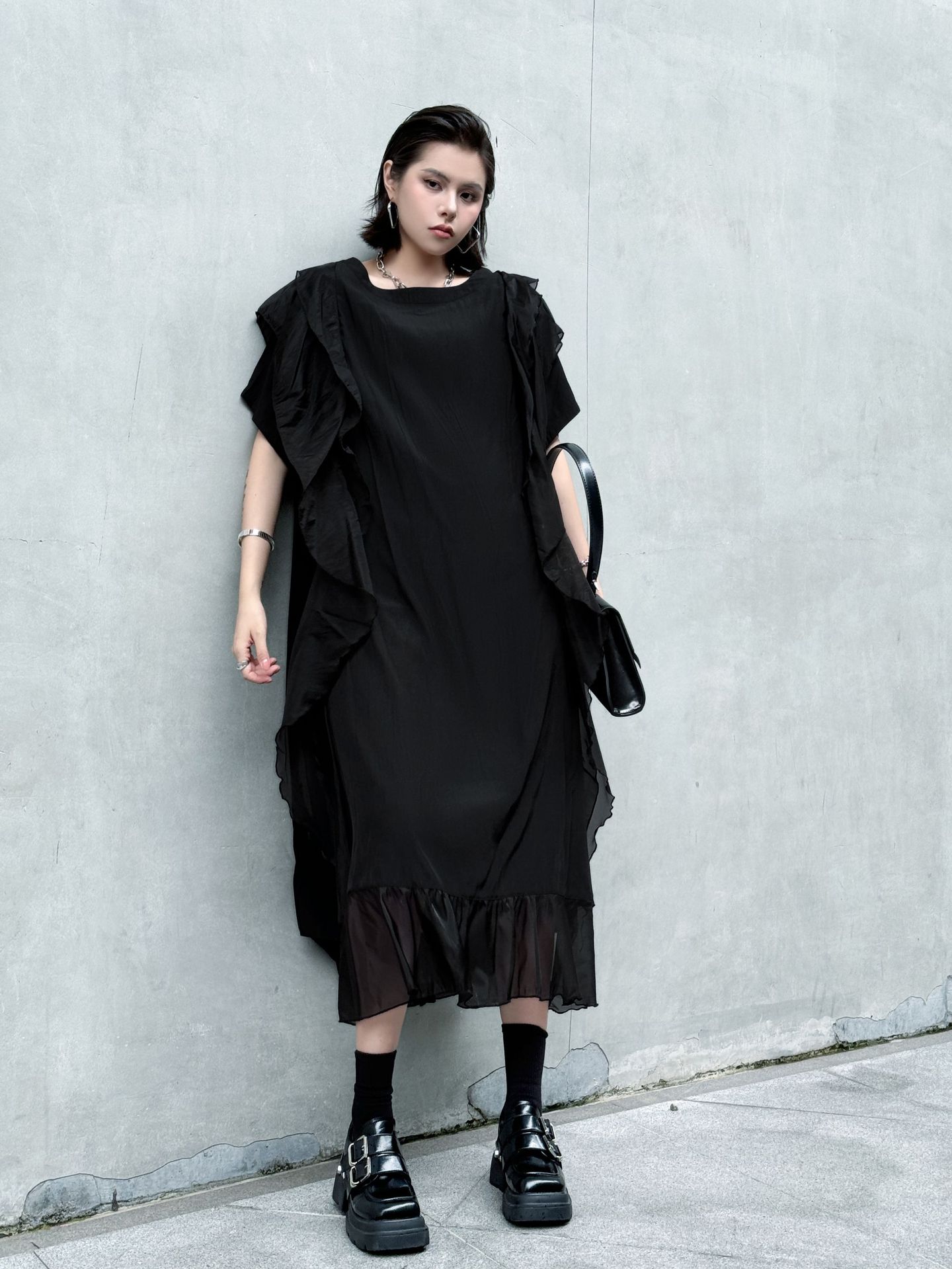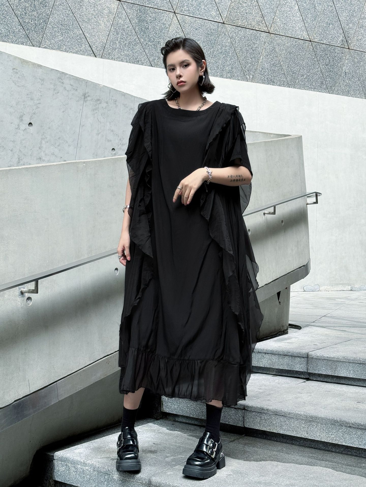 洗練された黒のワンピースは、どんなシーンにも対応できる万能アイテムです。ゆったりとしたシルエットが体のラインを優しく包み込み、快適な着心地を実現。上質な素材感と落ち着いた色合いで、カジュアルからフォーマルまで幅広いスタイリングが可能。一枚で完成する大人っぽい装いで、毎日のコーディネートをより洗練させます。