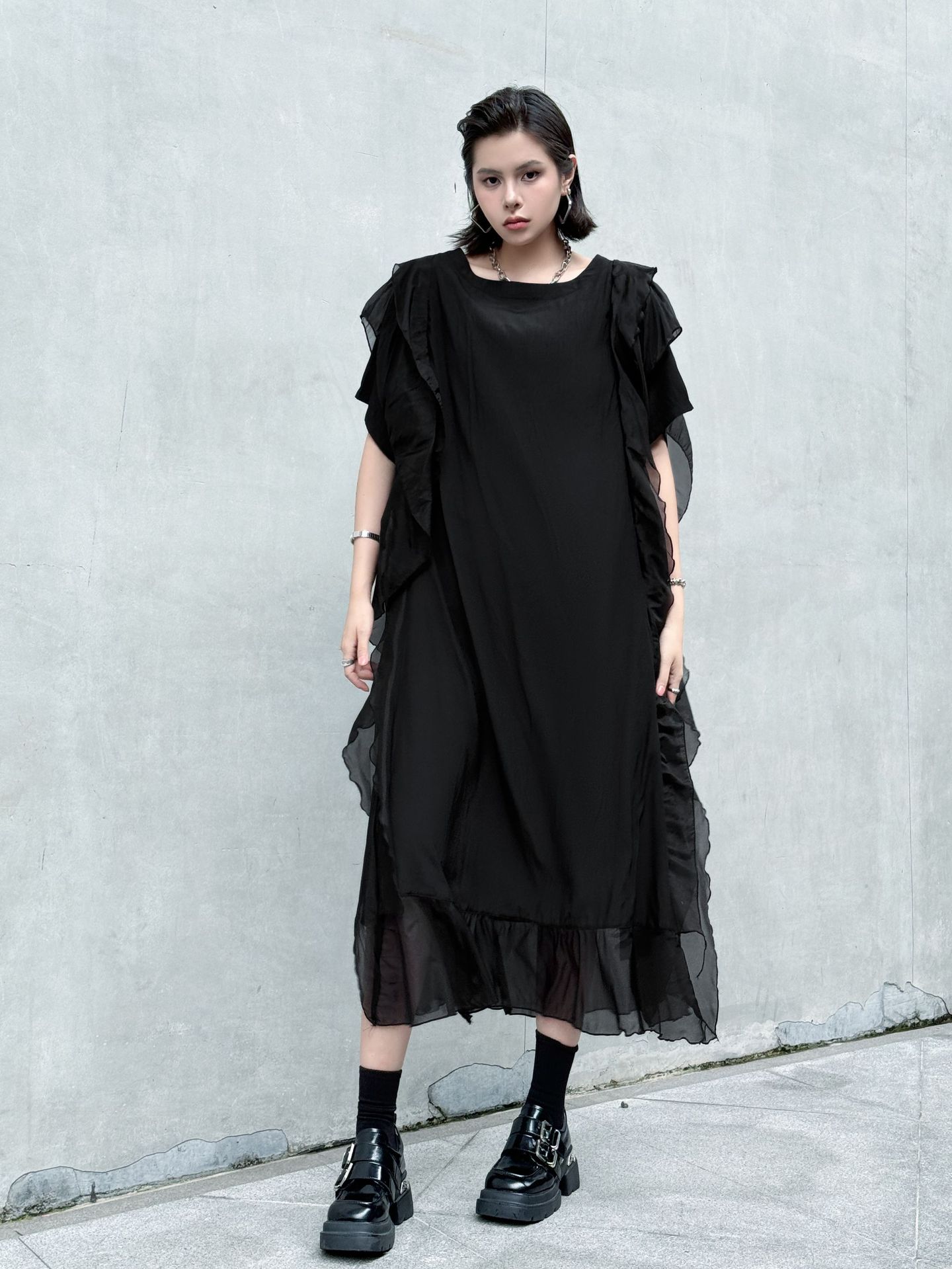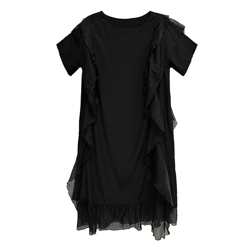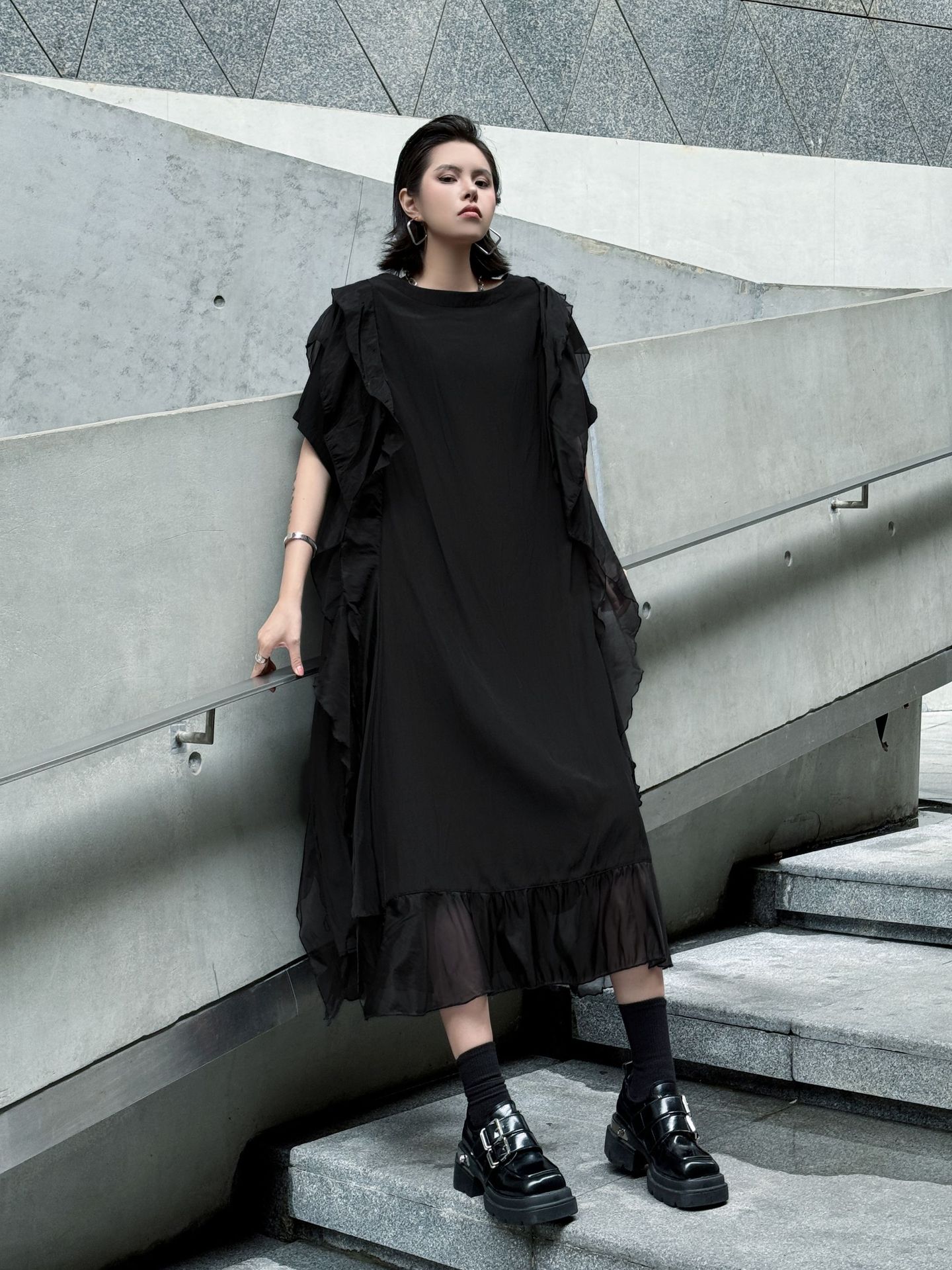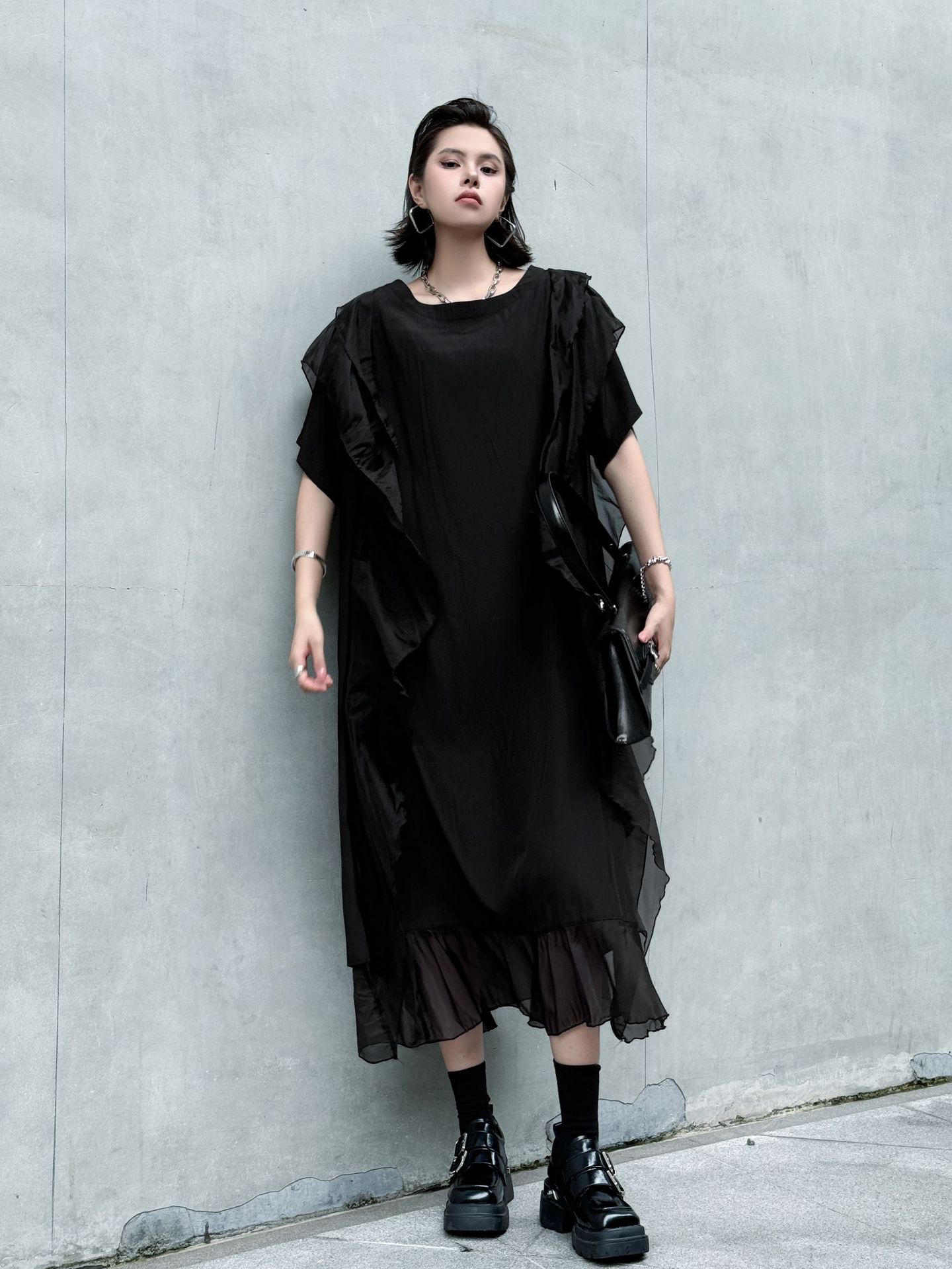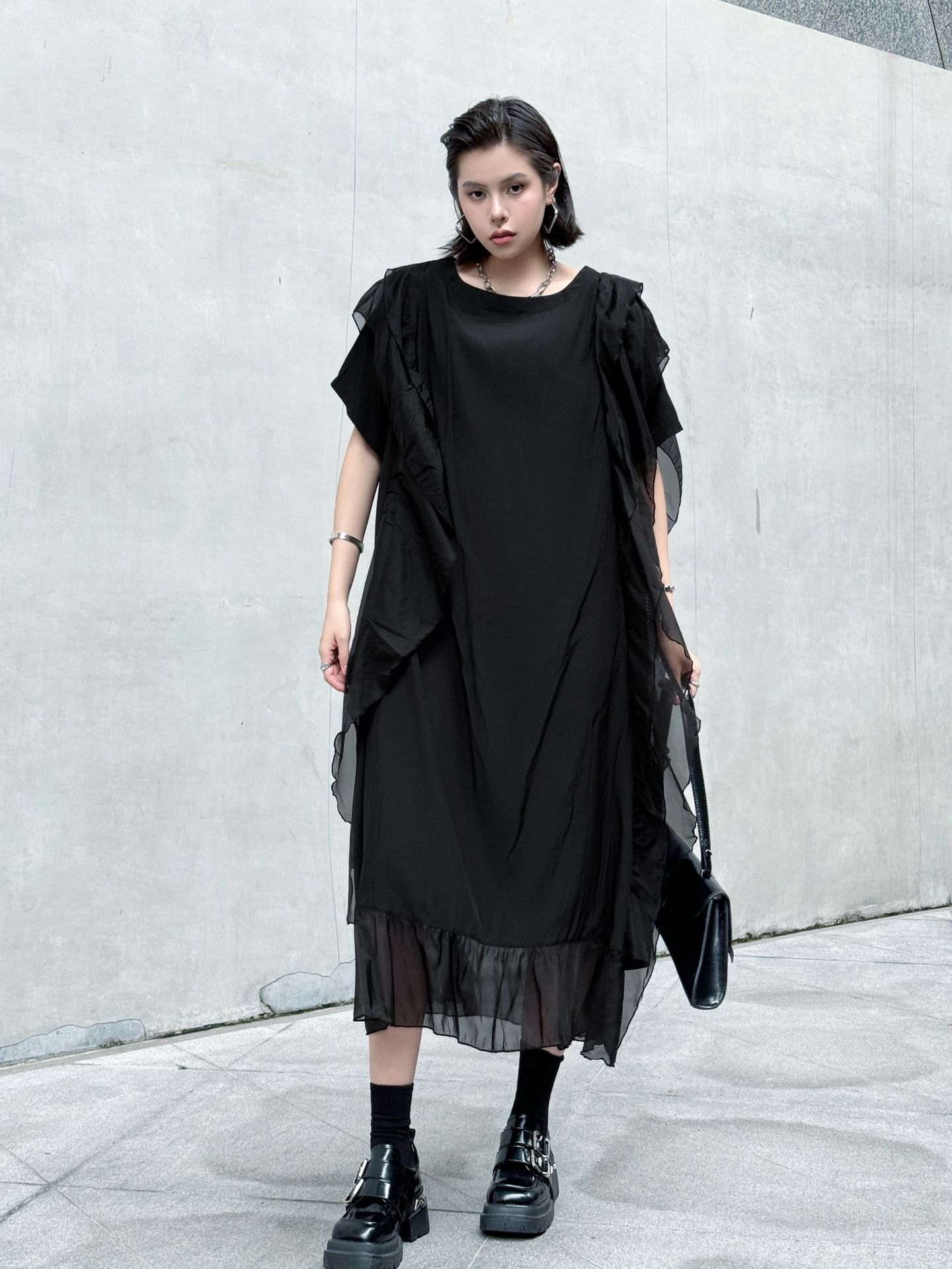 洗練された黒のワンピースは、どんなシーンにも対応できる万能アイテムです。ゆったりとしたシルエットが体のラインを優しく包み込み、快適な着心地を実現。上質な素材感と落ち着いた色合いで、カジュアルからフォーマルまで幅広いスタイリングが可能。一枚で完成する大人っぽい装いで、毎日のコーディネートをより洗練させます。