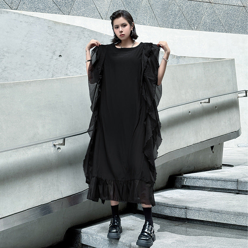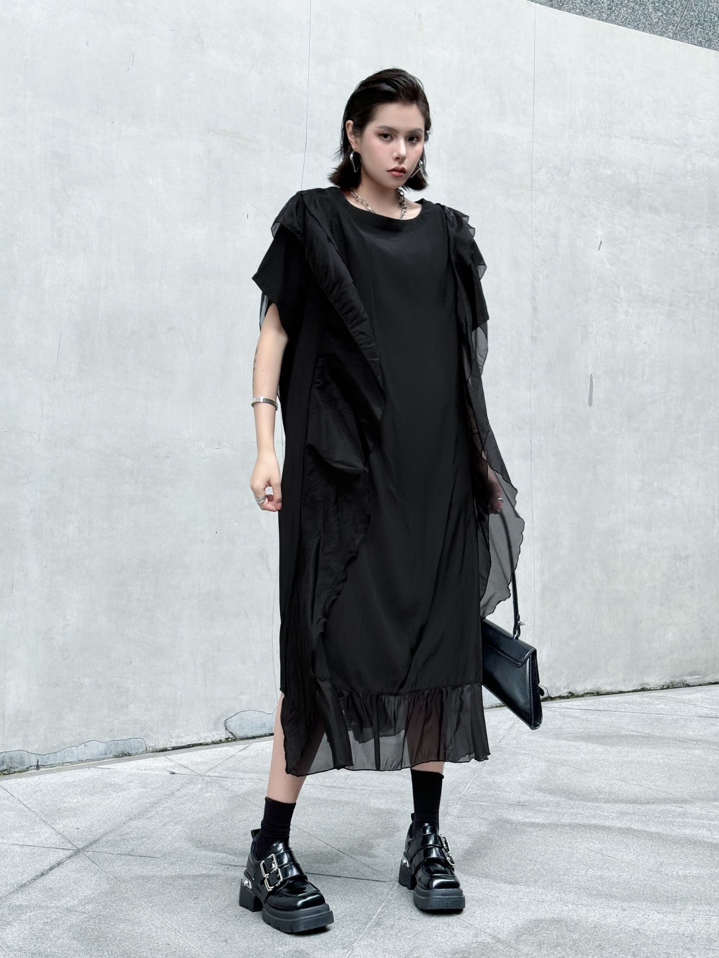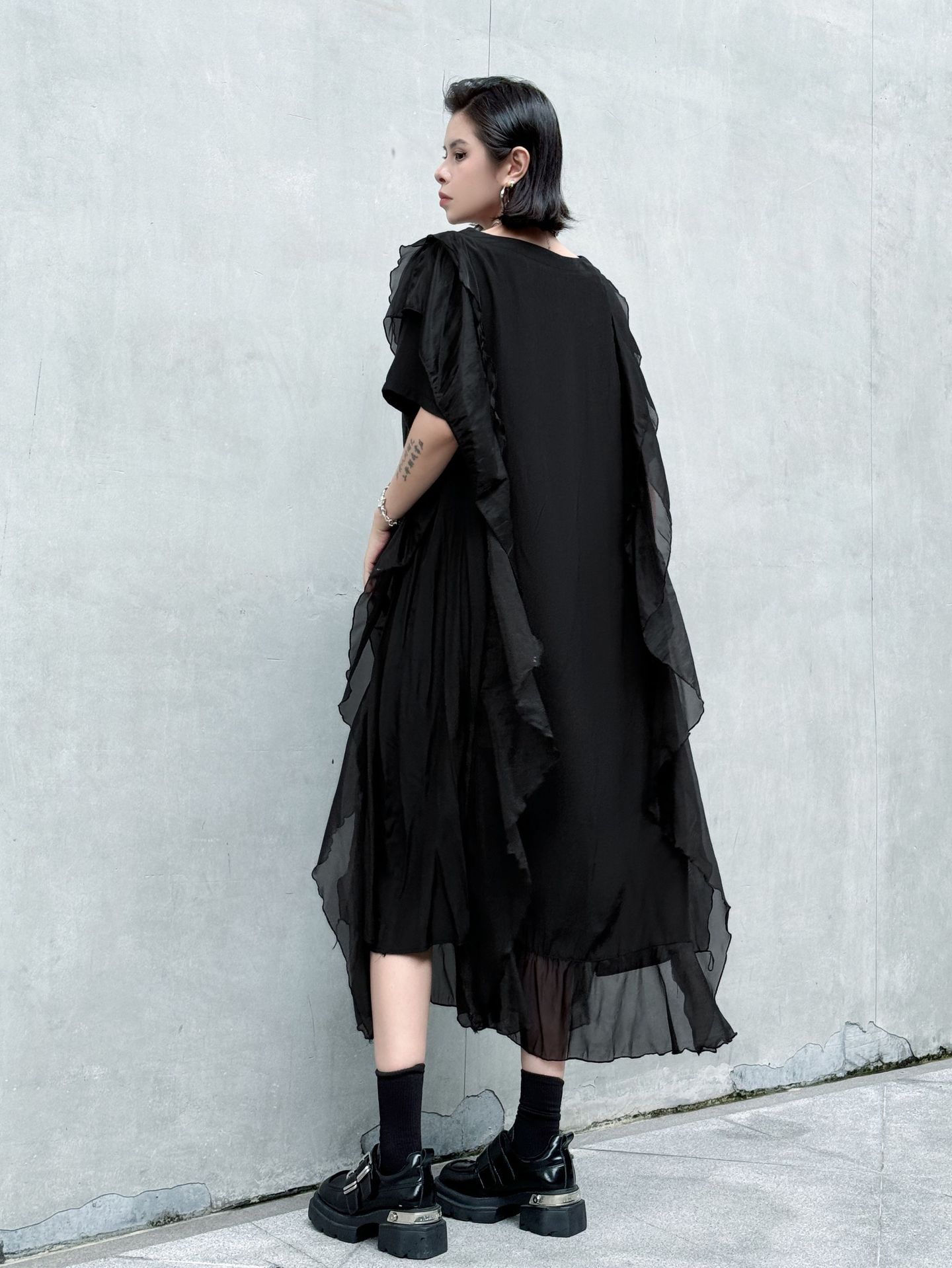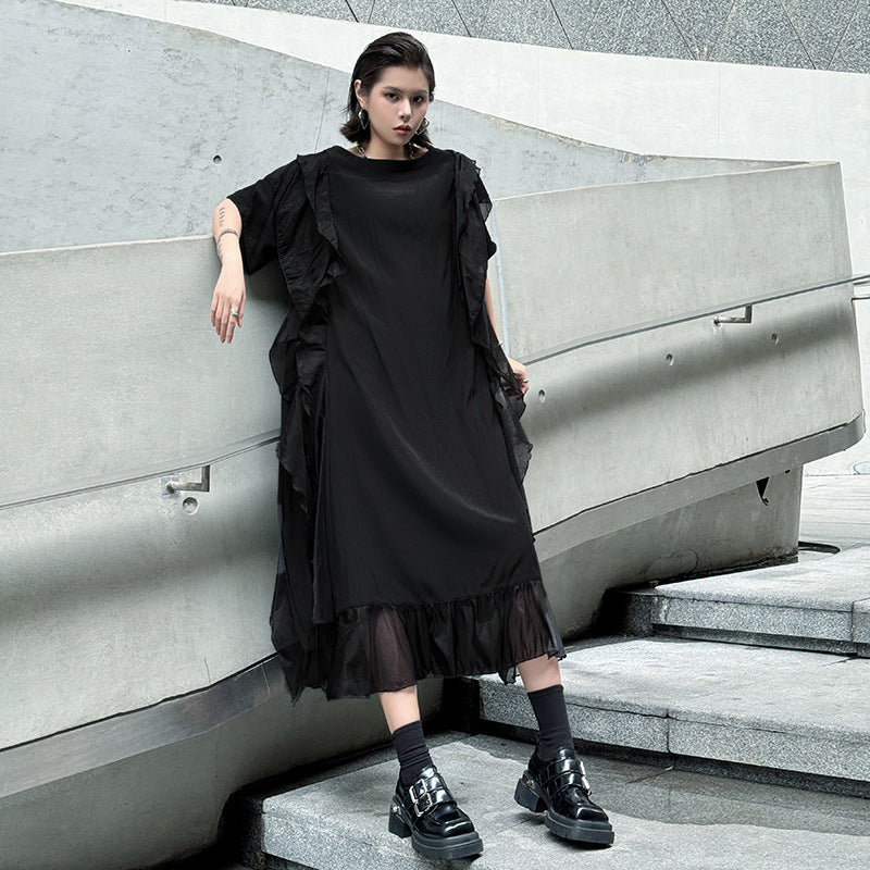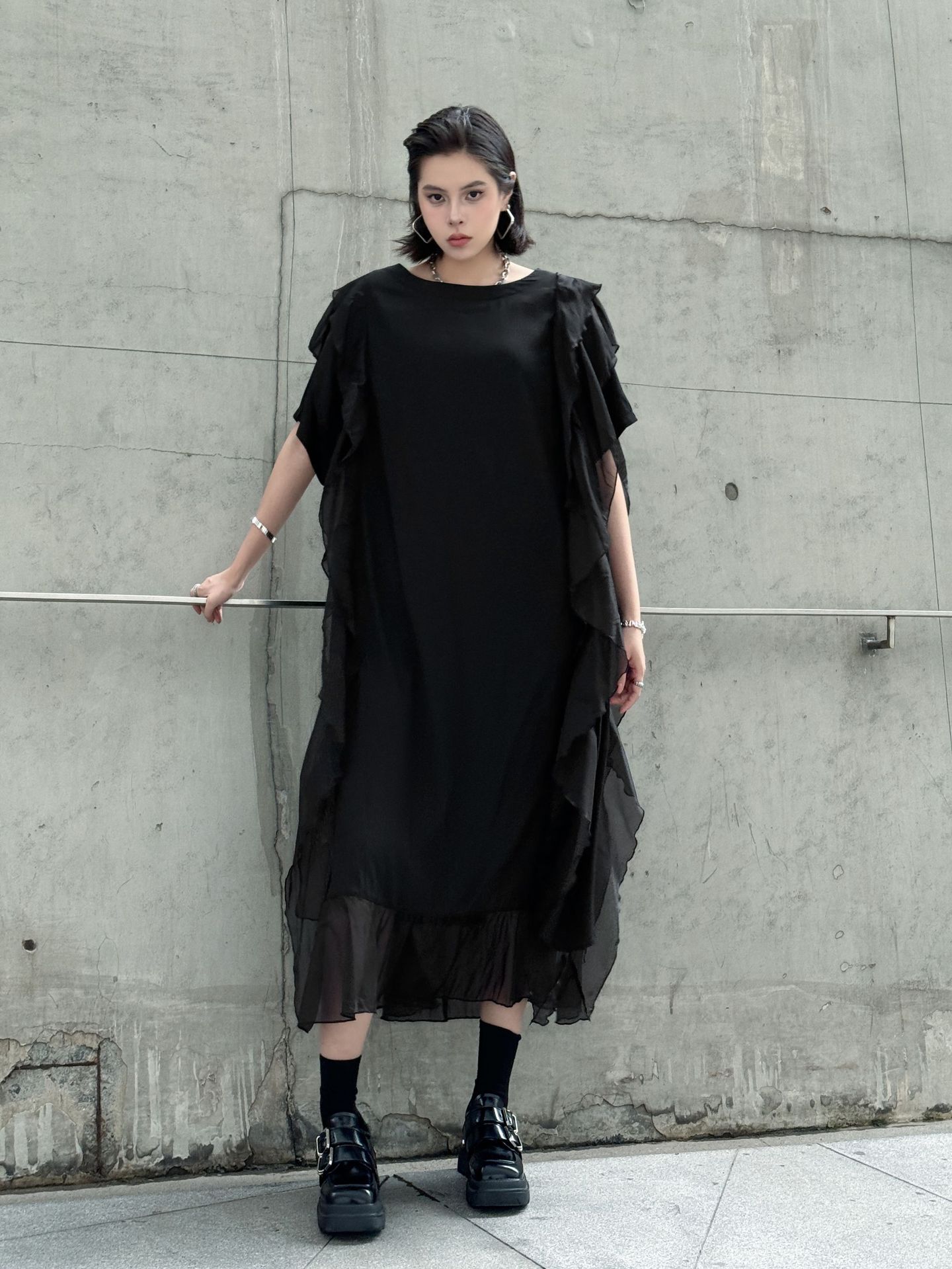 洗練された黒のワンピースは、どんなシーンにも対応できる万能アイテムです。ゆったりとしたシルエットが体のラインを優しく包み込み、快適な着心地を実現。上質な素材感と落ち着いた色合いで、カジュアルからフォーマルまで幅広いスタイリングが可能。一枚で完成する大人っぽい装いで、毎日のコーディネートをより洗練させます。