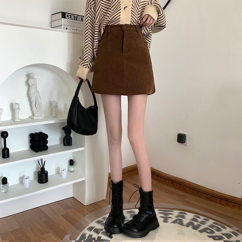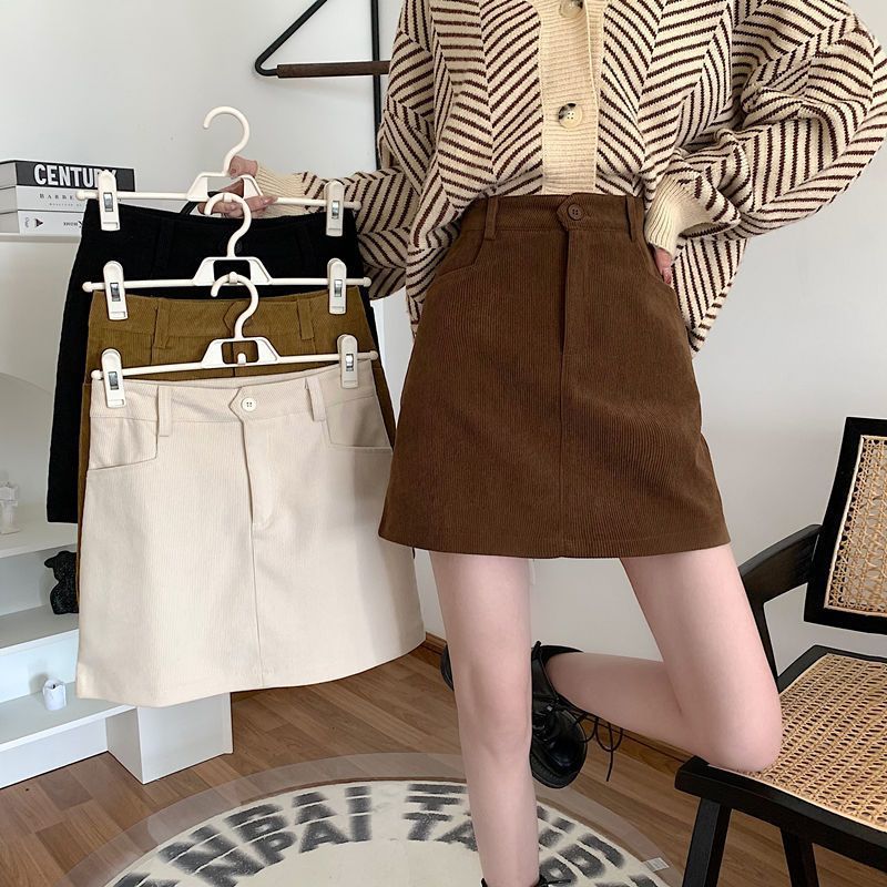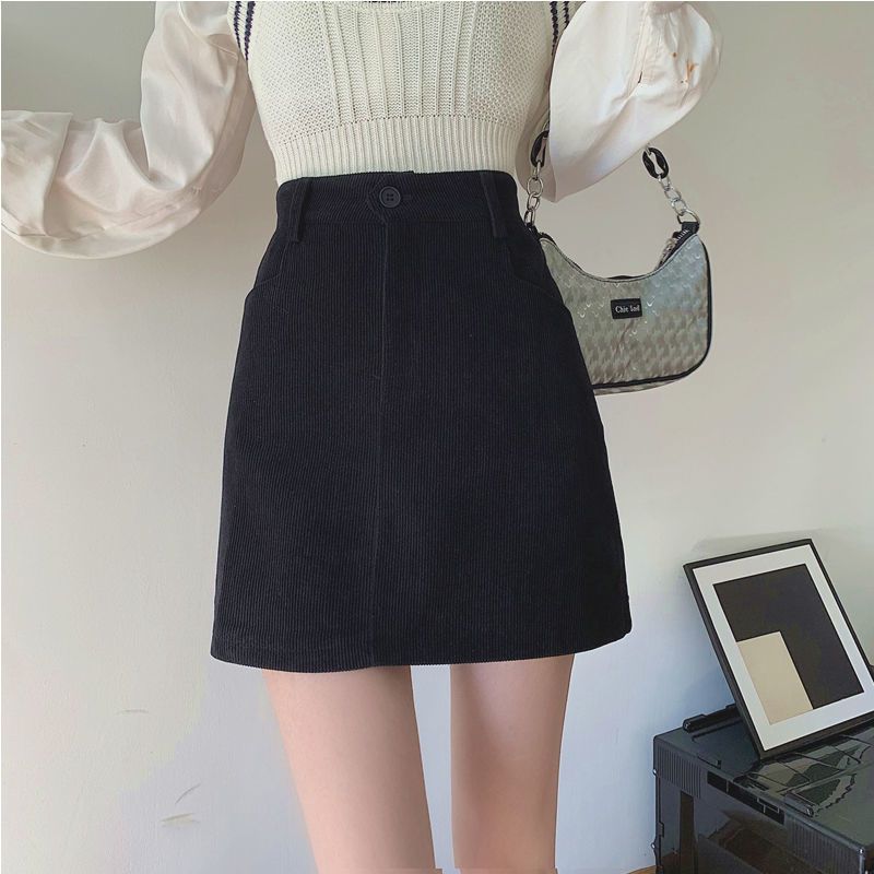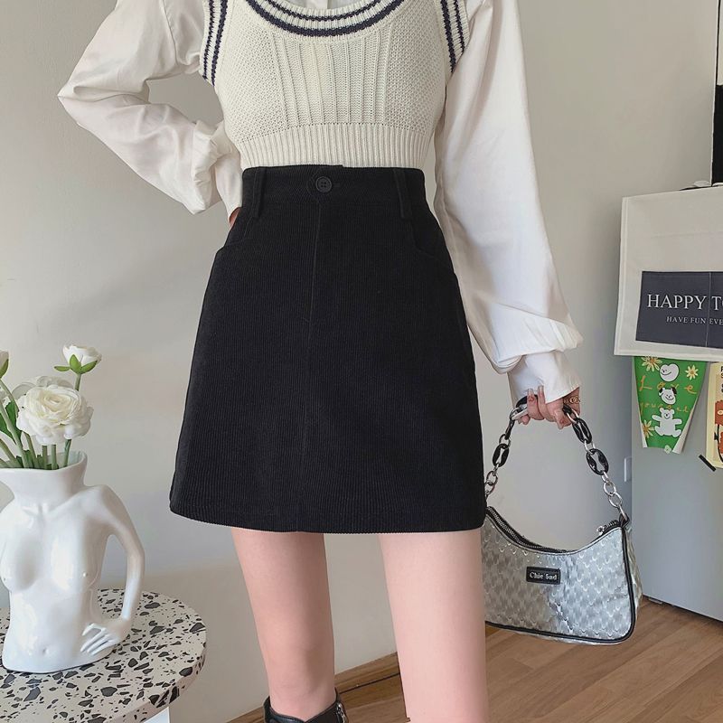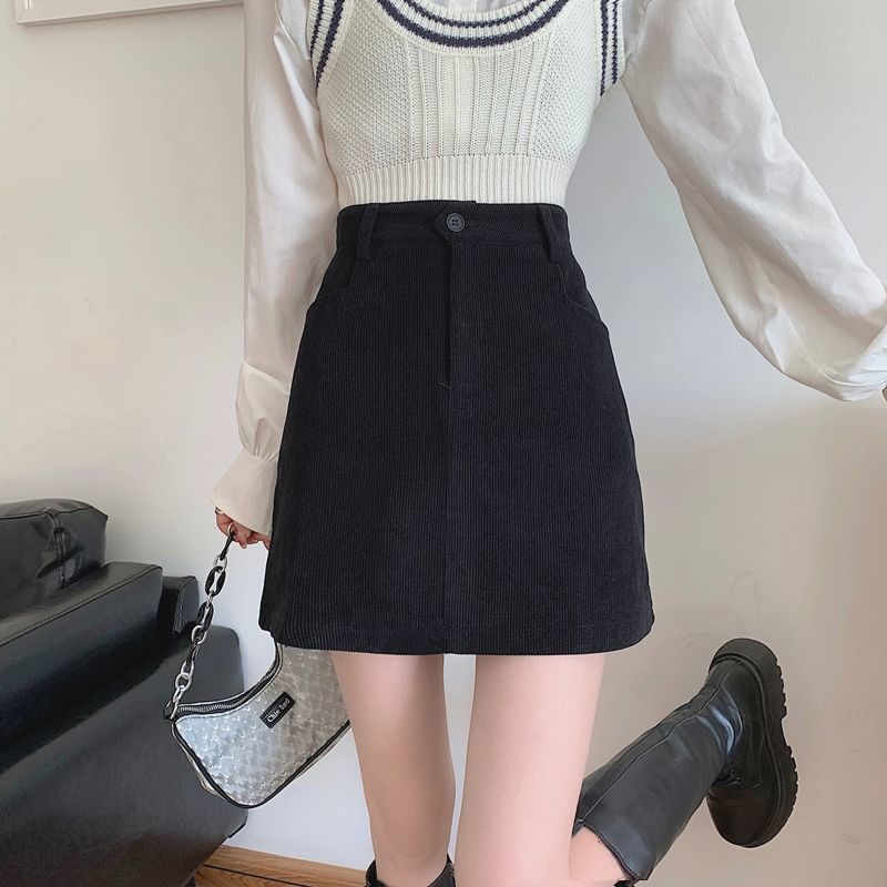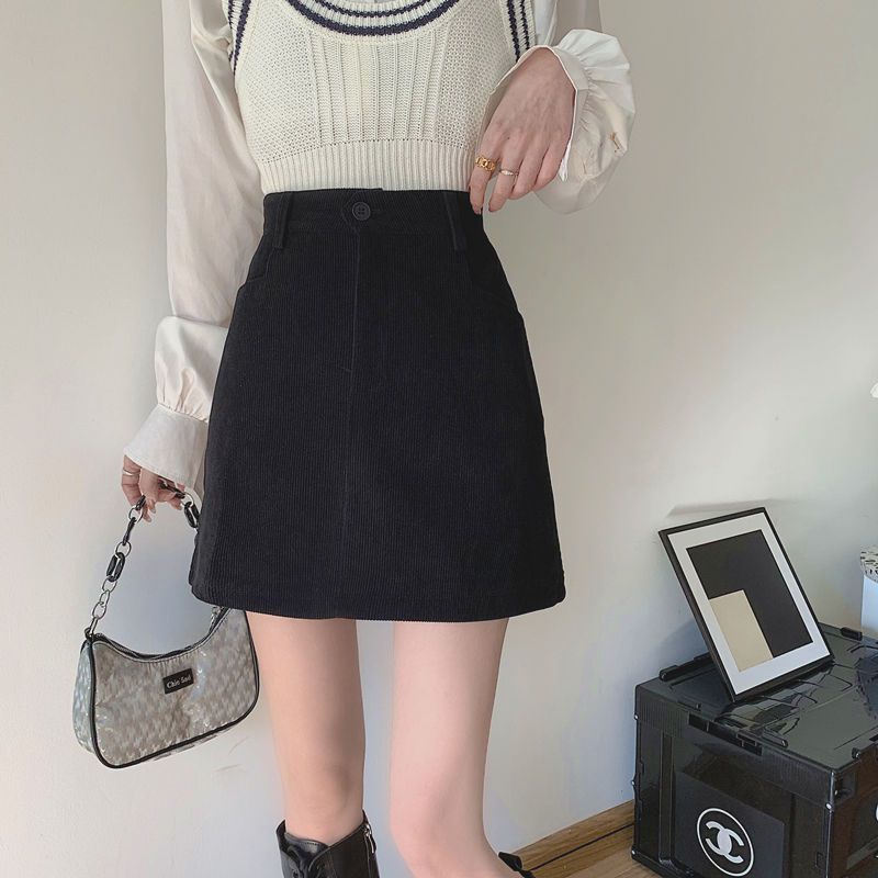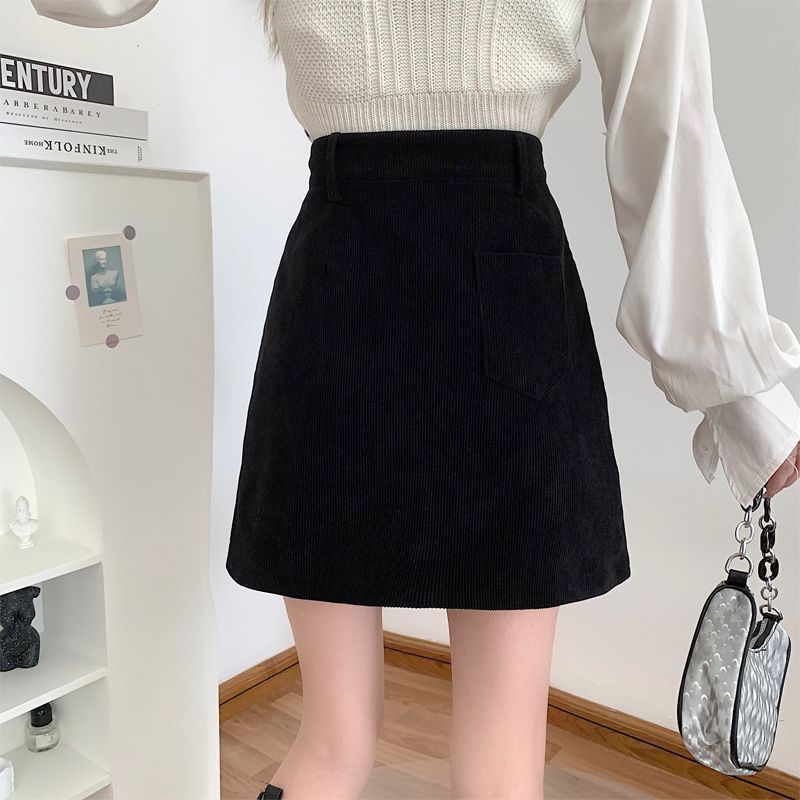 Fat mm プラスサイズ女性用コーデュロイ Aラインスカート、秋、新デザイン、ハイウエスト、ブラック、スリム、ヒップにぴったり合うショートスカート