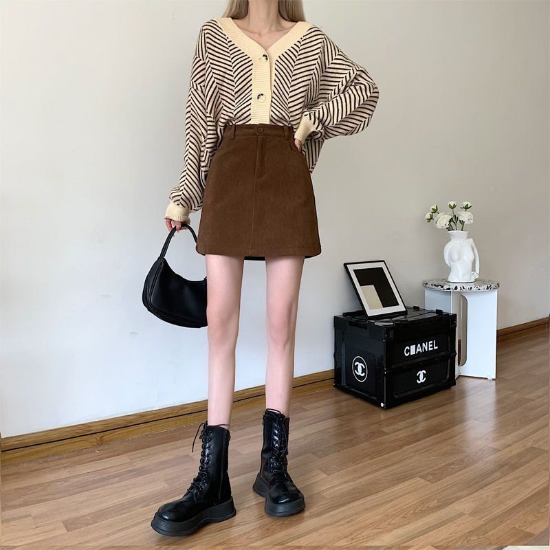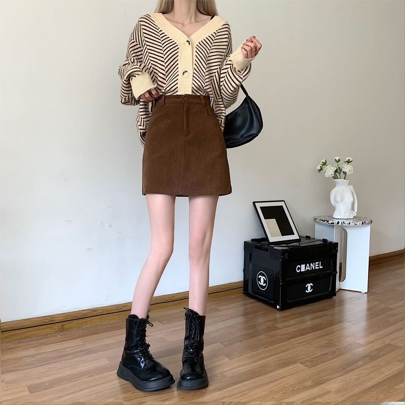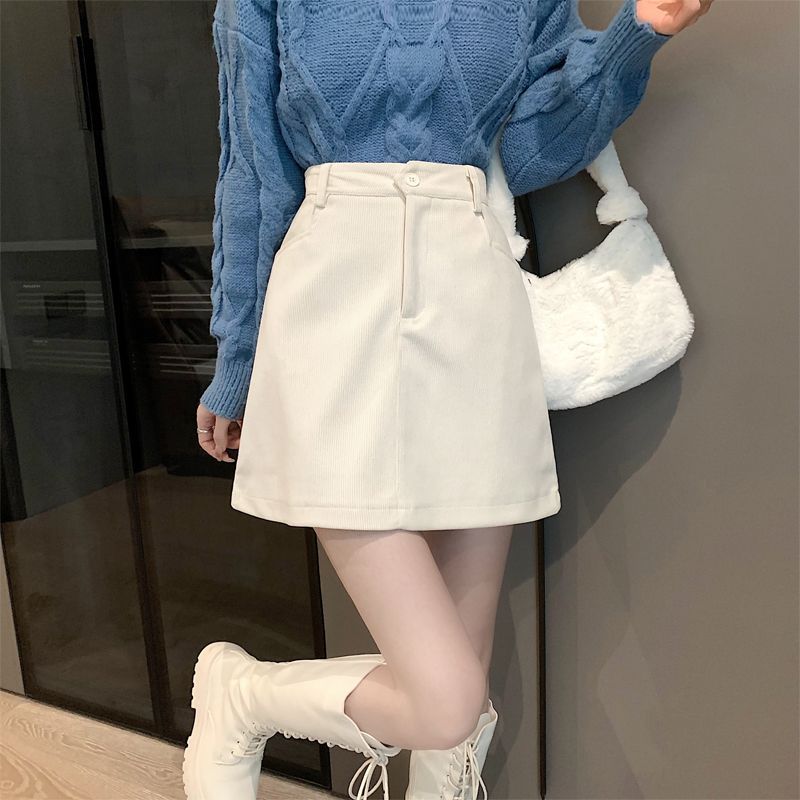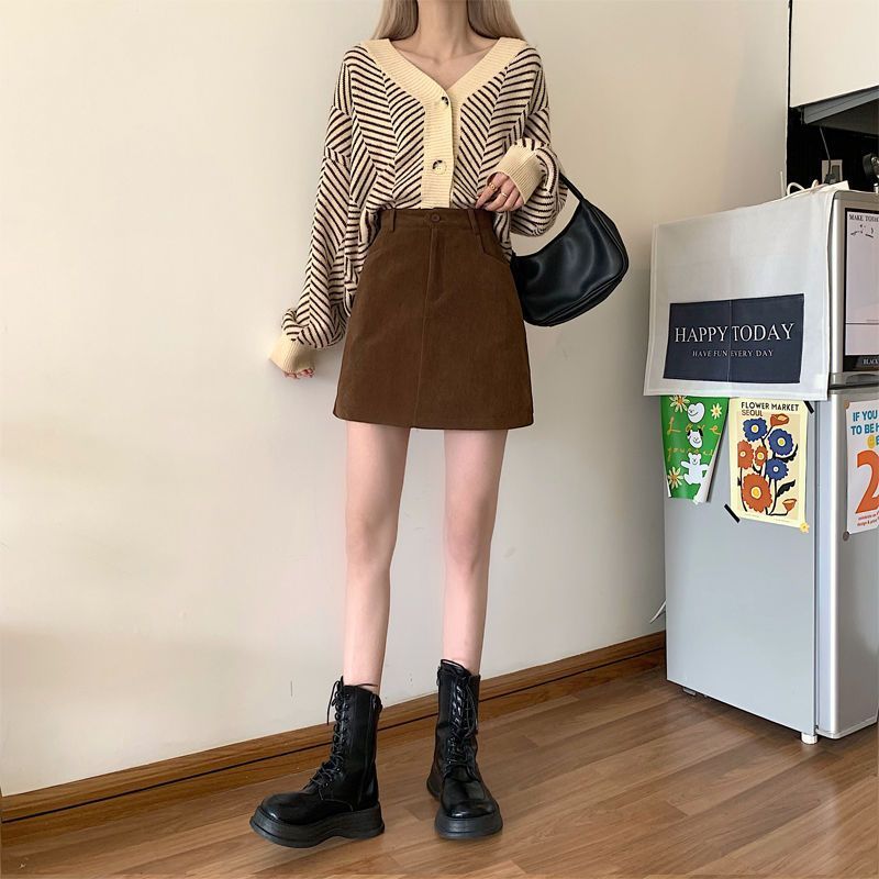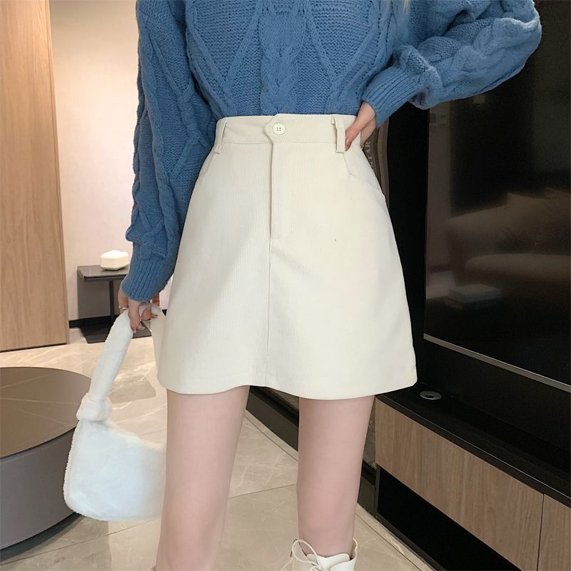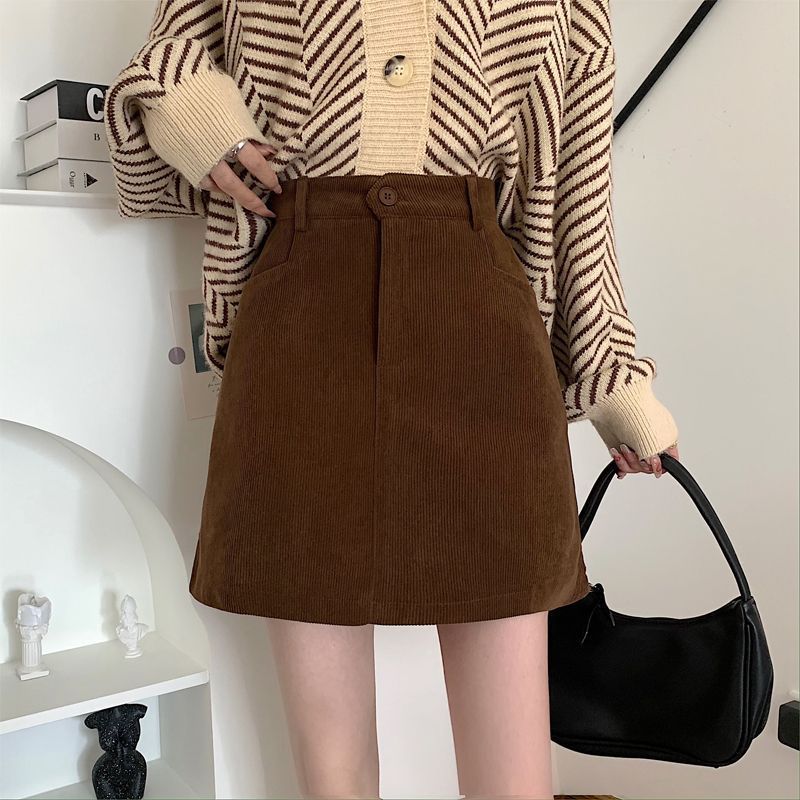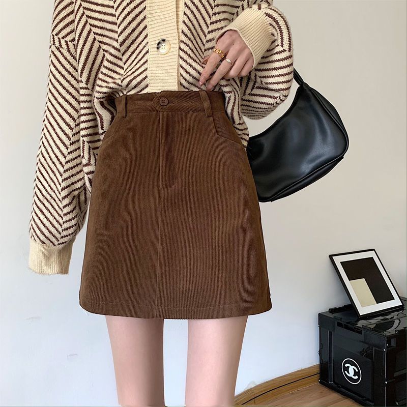Fat mm プラスサイズ女性用コーデュロイ Aラインスカート、秋、新デザイン、ハイウエスト、ブラック、スリム、ヒップにぴったり合うショートスカート