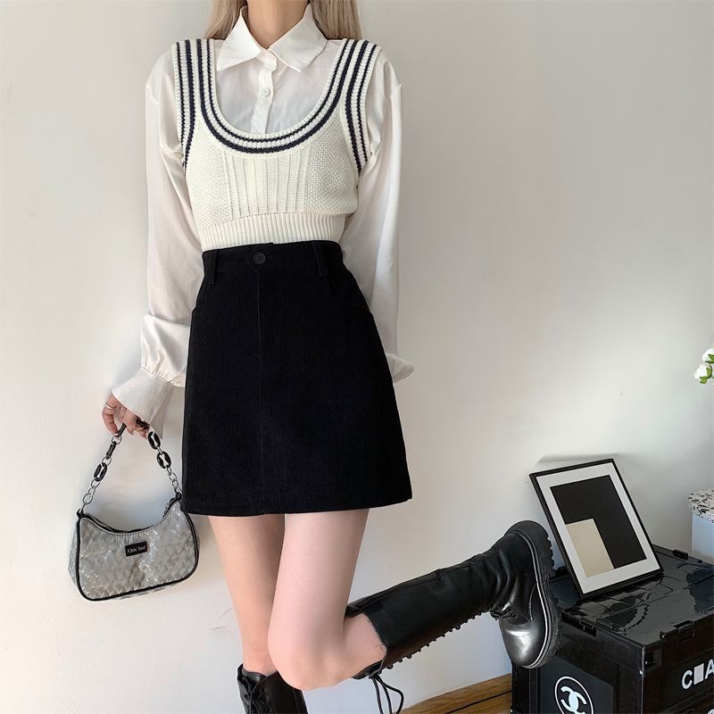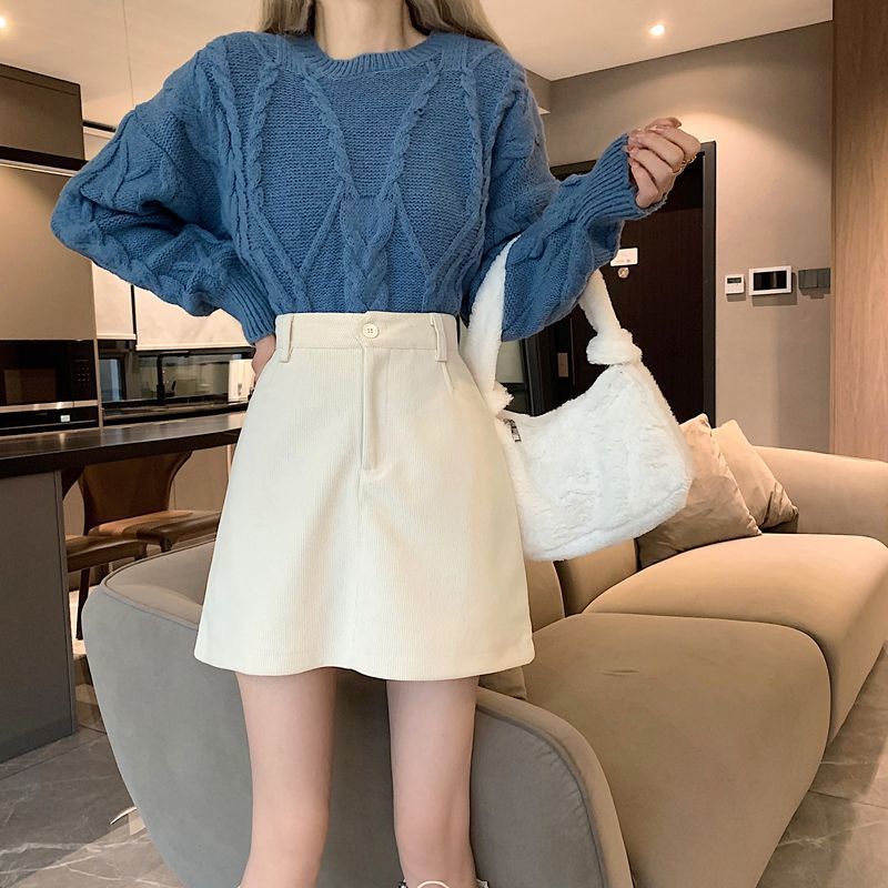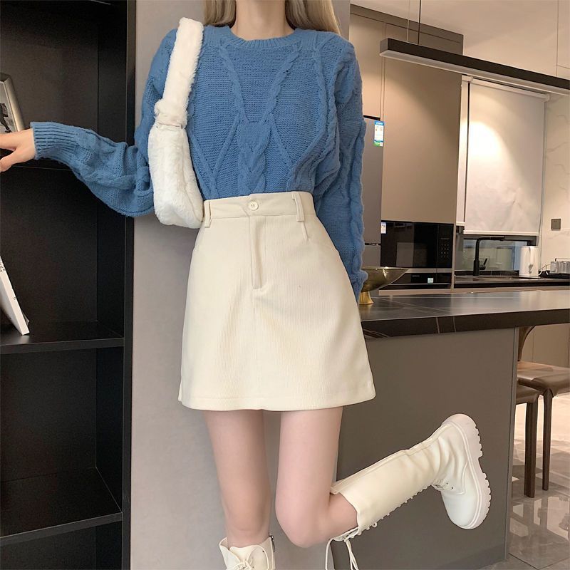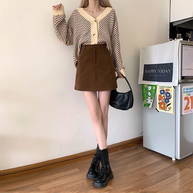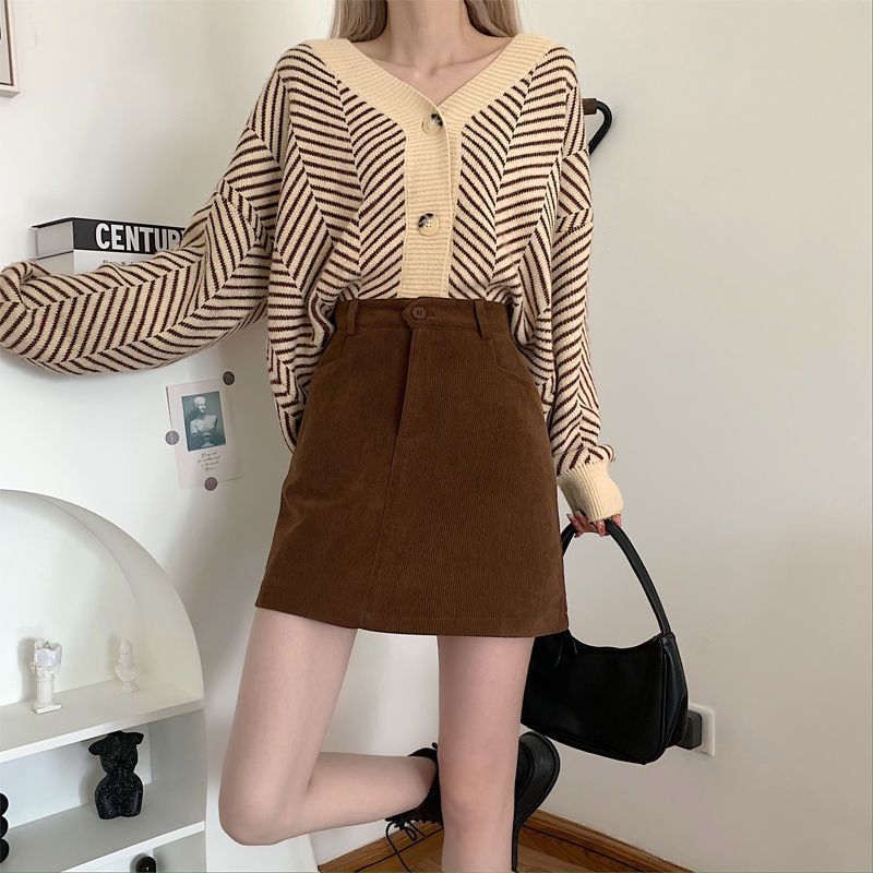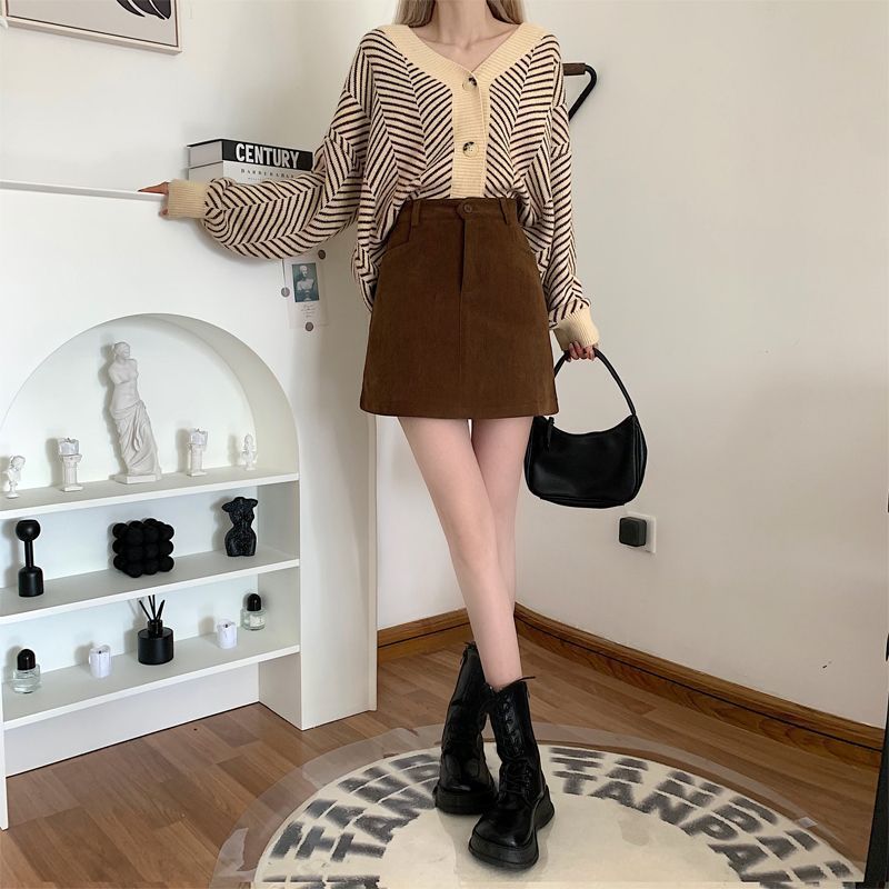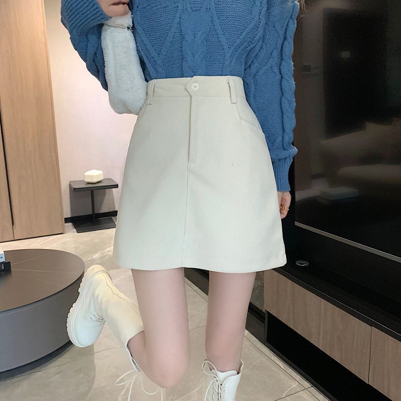 Fat mm プラスサイズ女性用コーデュロイ Aラインスカート、秋、新デザイン、ハイウエスト、ブラック、スリム、ヒップにぴったり合うショートスカート